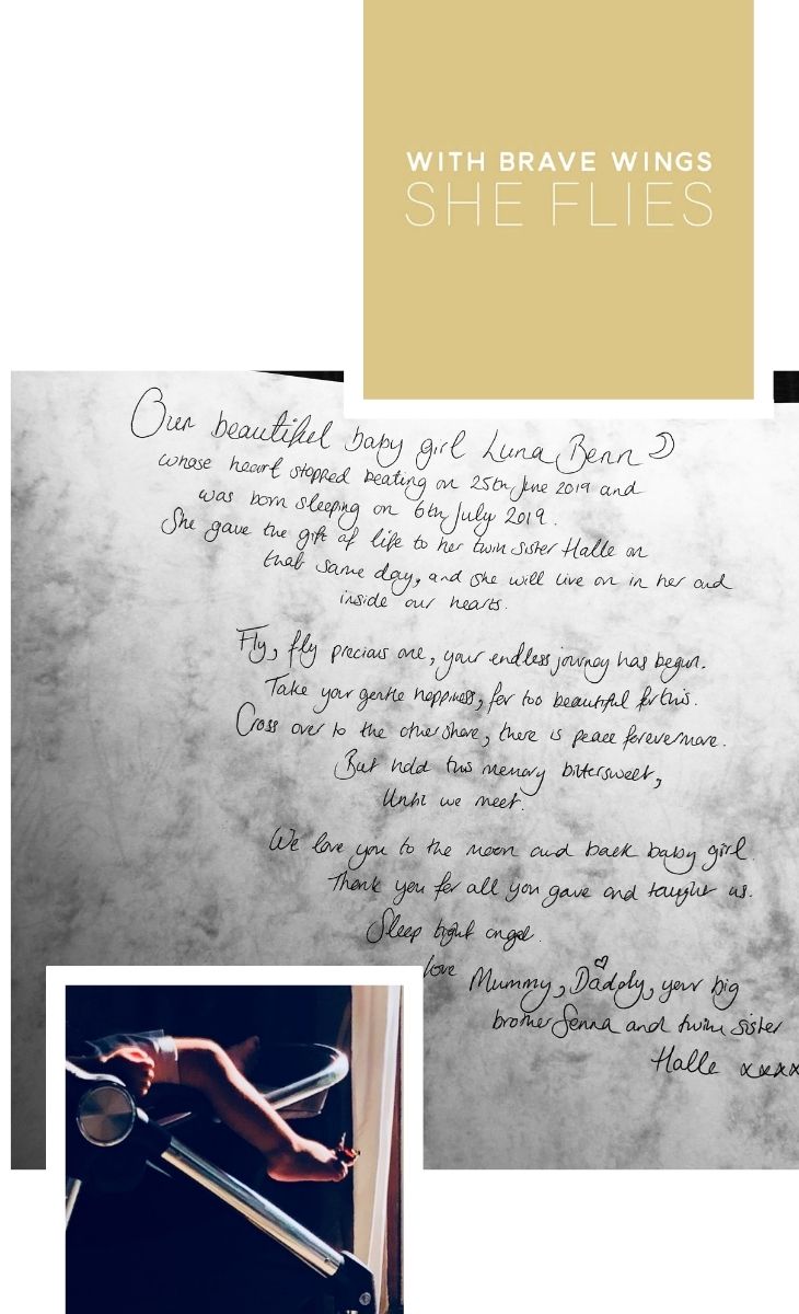When asked what superpower I would choose I always say the ability to fly. The feeling must be so liberating and I love to imagine my baby using the wings she was born with to fly high and enjoy the views and the breeze. Luna’s song, and one of the songs we played at her cremation, was ‘Fly’ by Celine Dion. It was a song I had first heard at the finals of Miss Dance of Great Britain many years ago. It was the winner’s music (I’m sure some of my dancer friends will remember the exact dance and costume!).